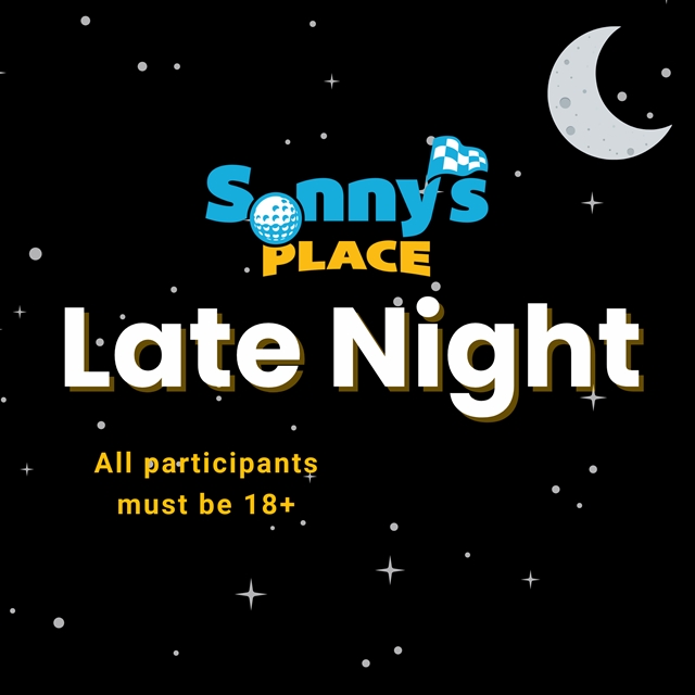 Experience Sonny’s Place like never before at our exclusive after-hours event. This 18+ ticketed night offers unlimited access to all attractions, including Go-Karts, Laser Tag, Mini Golf, Batting Cages, Arcade games, the XD Dark Ride, Carousel, and the Soaring Eagle Zipline. Enjoy a lively, adults-only atmosphere with food and beverages available for purchase throughout the evening.
